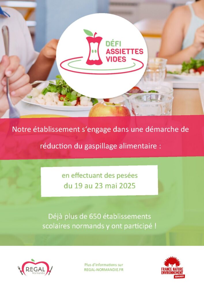 Depuis 2017, le RÉGAL Normandie organise des Défis Assiettes Vides pour accompagner les restaurants collectifs dans leur démarche de lutte contre le gaspillage alimentaire (Art L 541-15-3 code environnement).